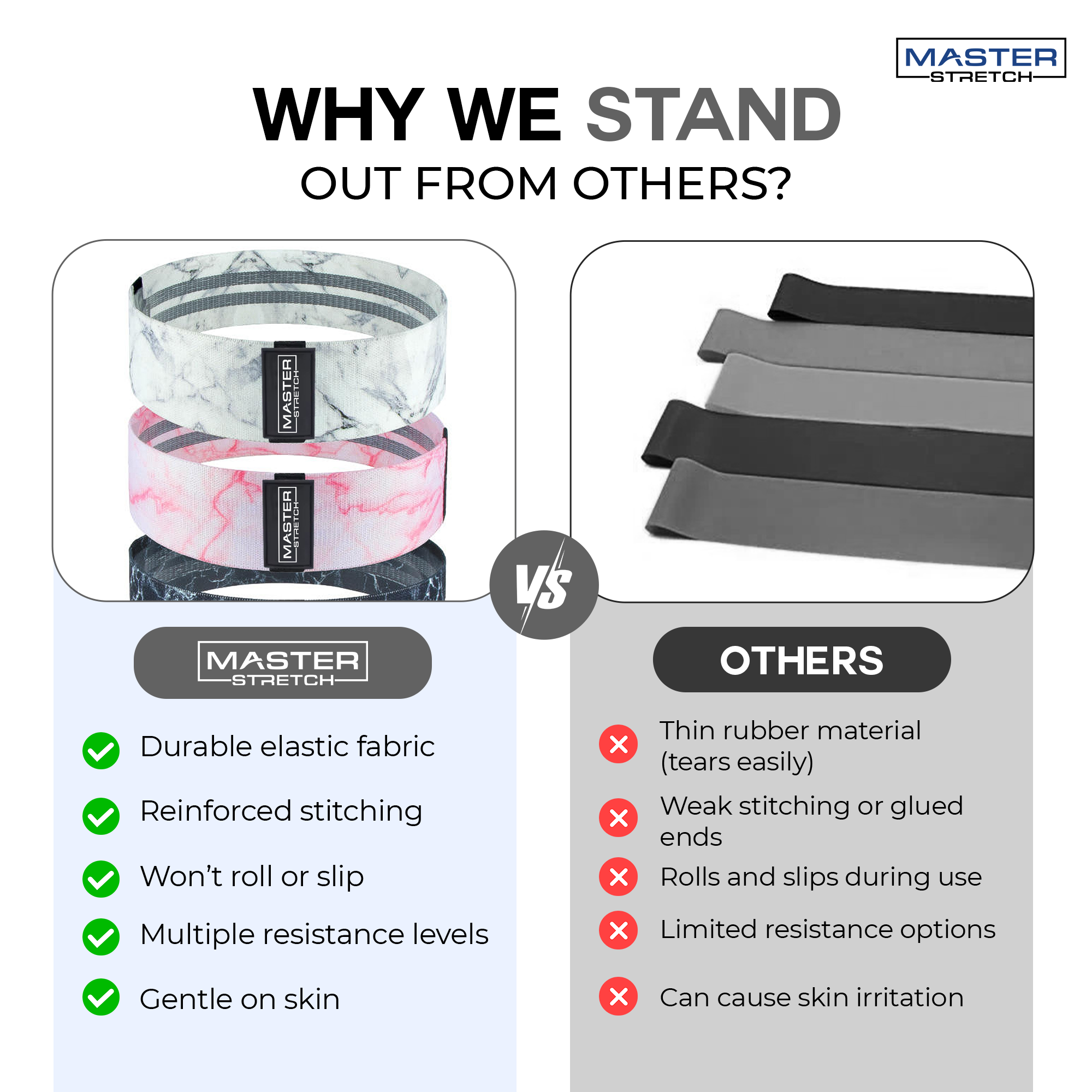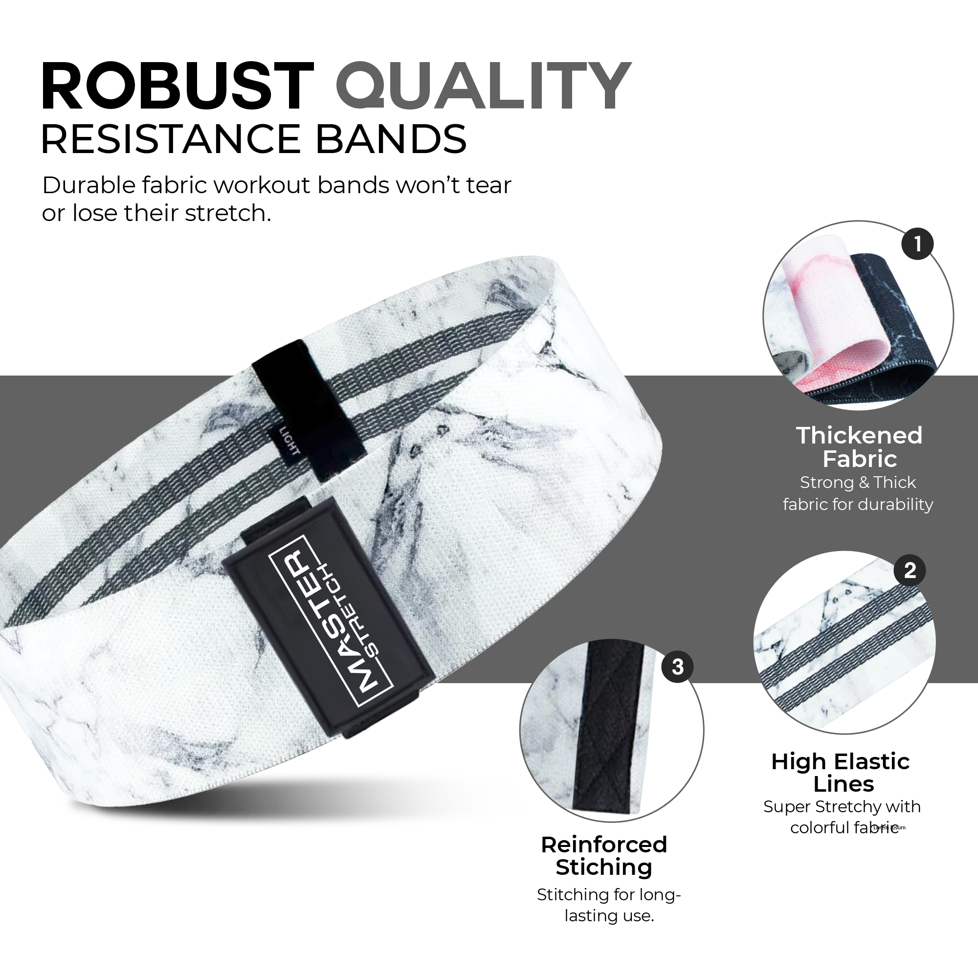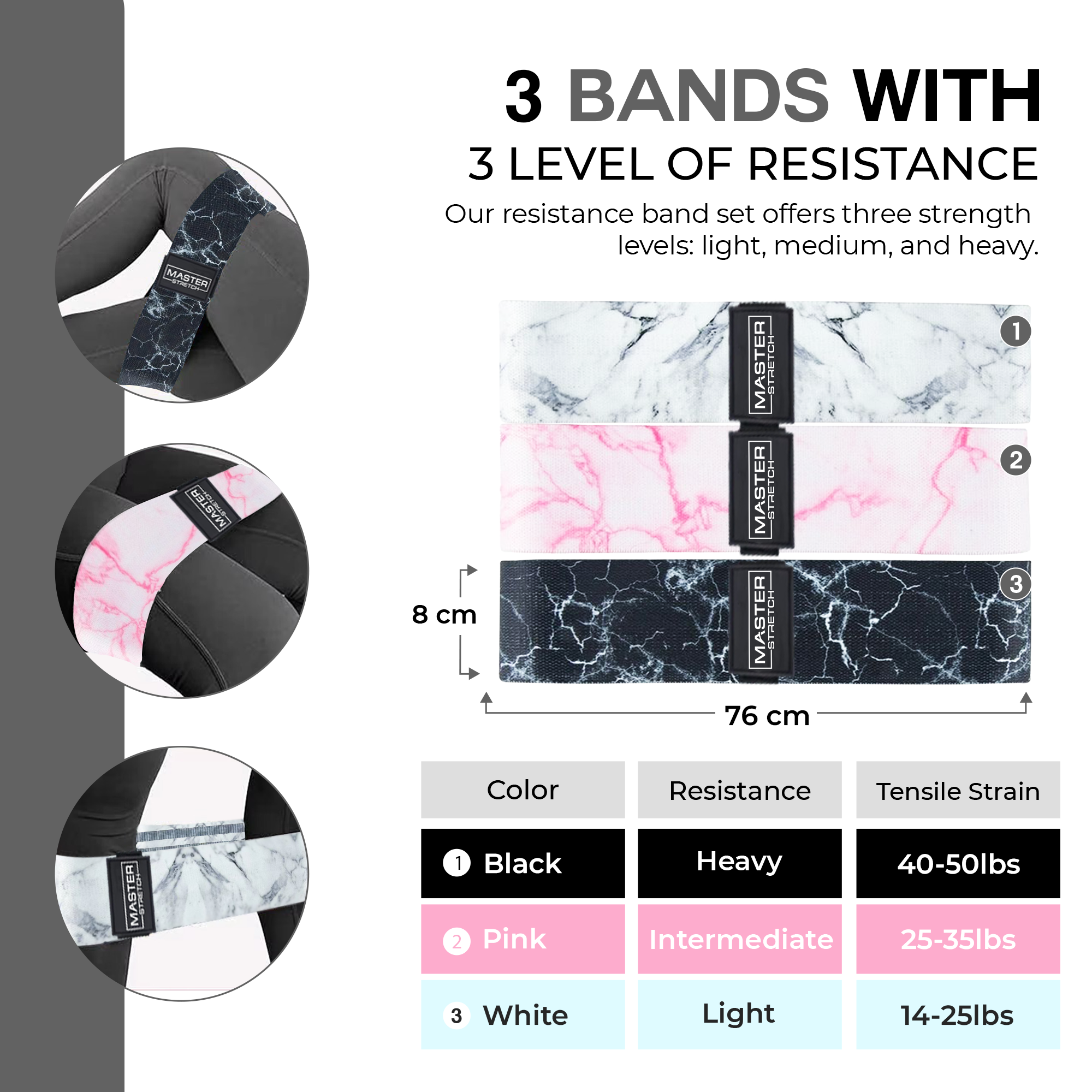 Master Stretch 3cm Sublimated Fabric Resistance Bands – 3 Pack Mobility & Rehab Set (Design Variant)