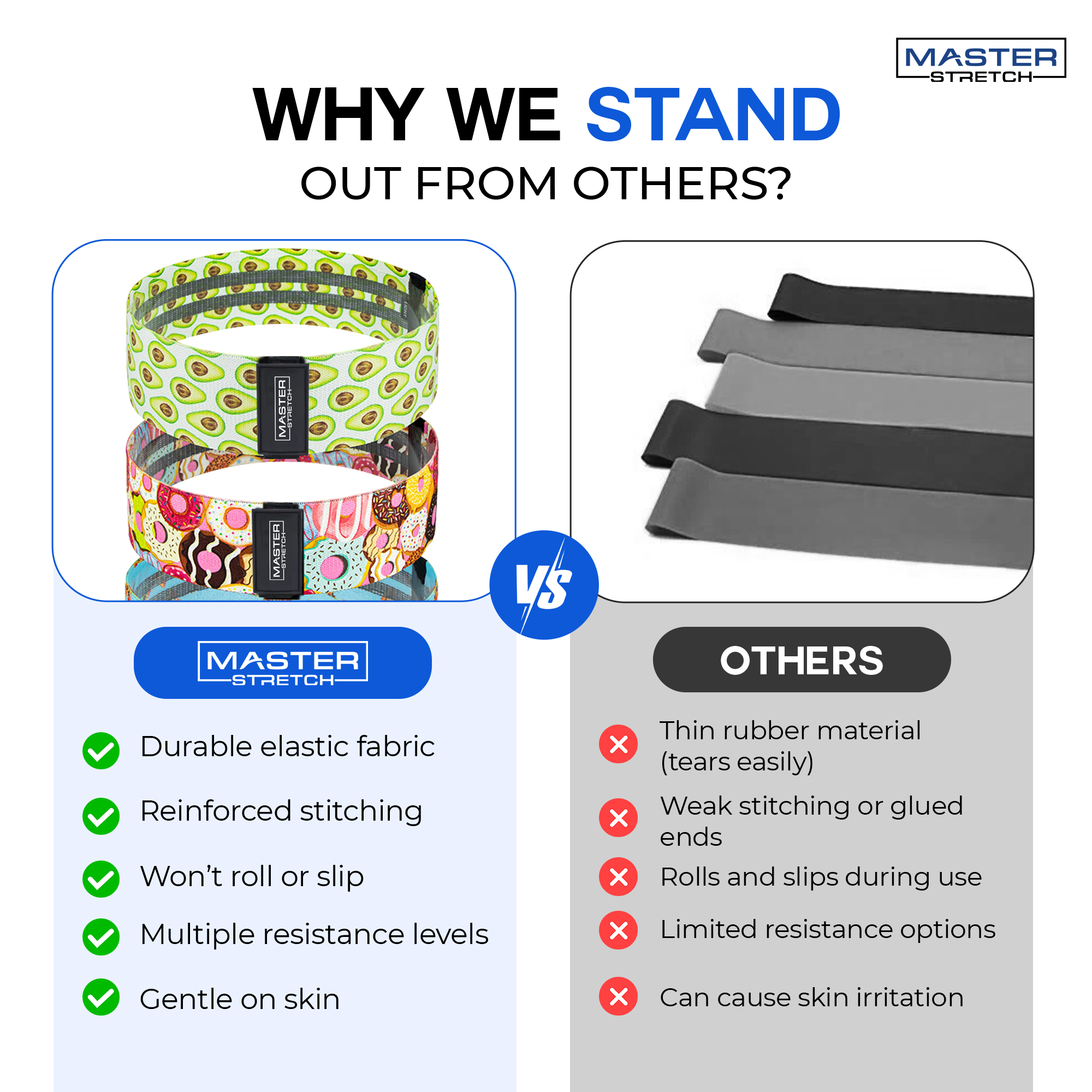 The Master Stretch 3cm Sublimation Printed Resistance Band Set is designed for controlled movement, rehab exercises, mobility training, and upper-body strength work.
