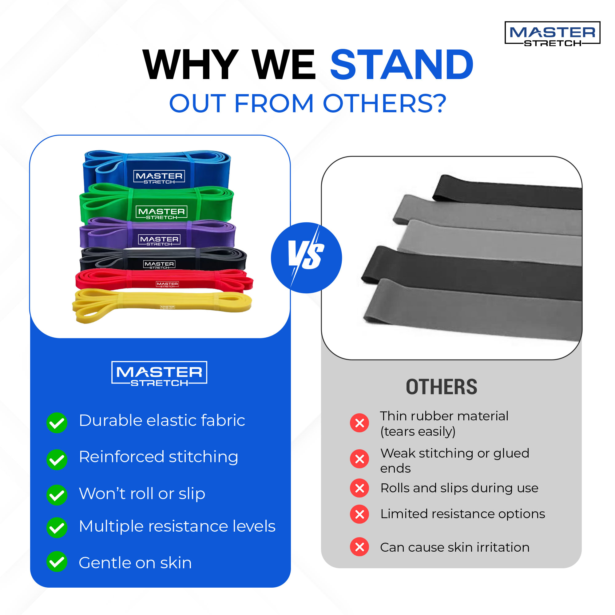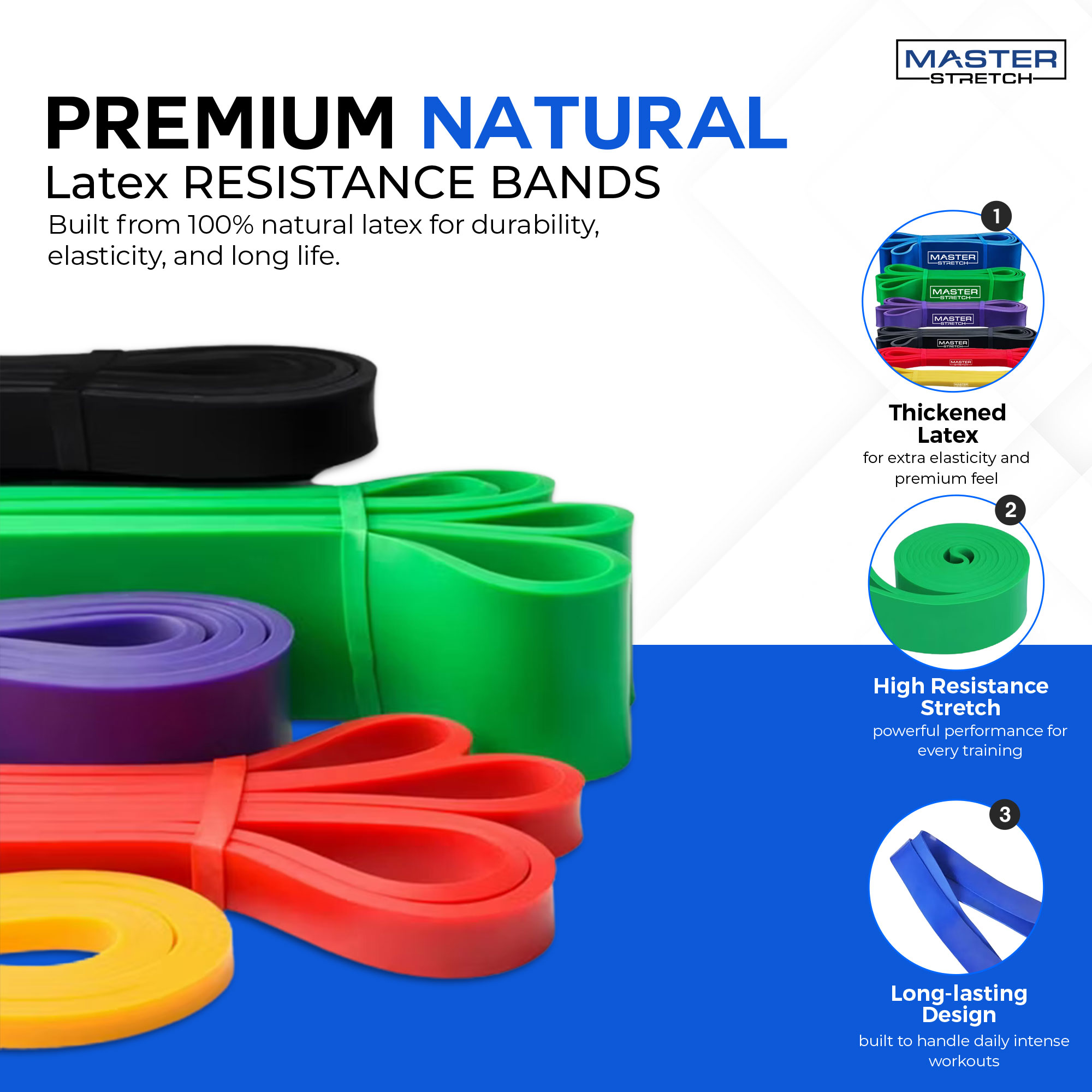 The Master Stretch Natural Latex Resistance Band Set delivers progressive resistance for strength training, stretching, assisted exercises, and full-body workouts—at home, in the gym, or on the go.