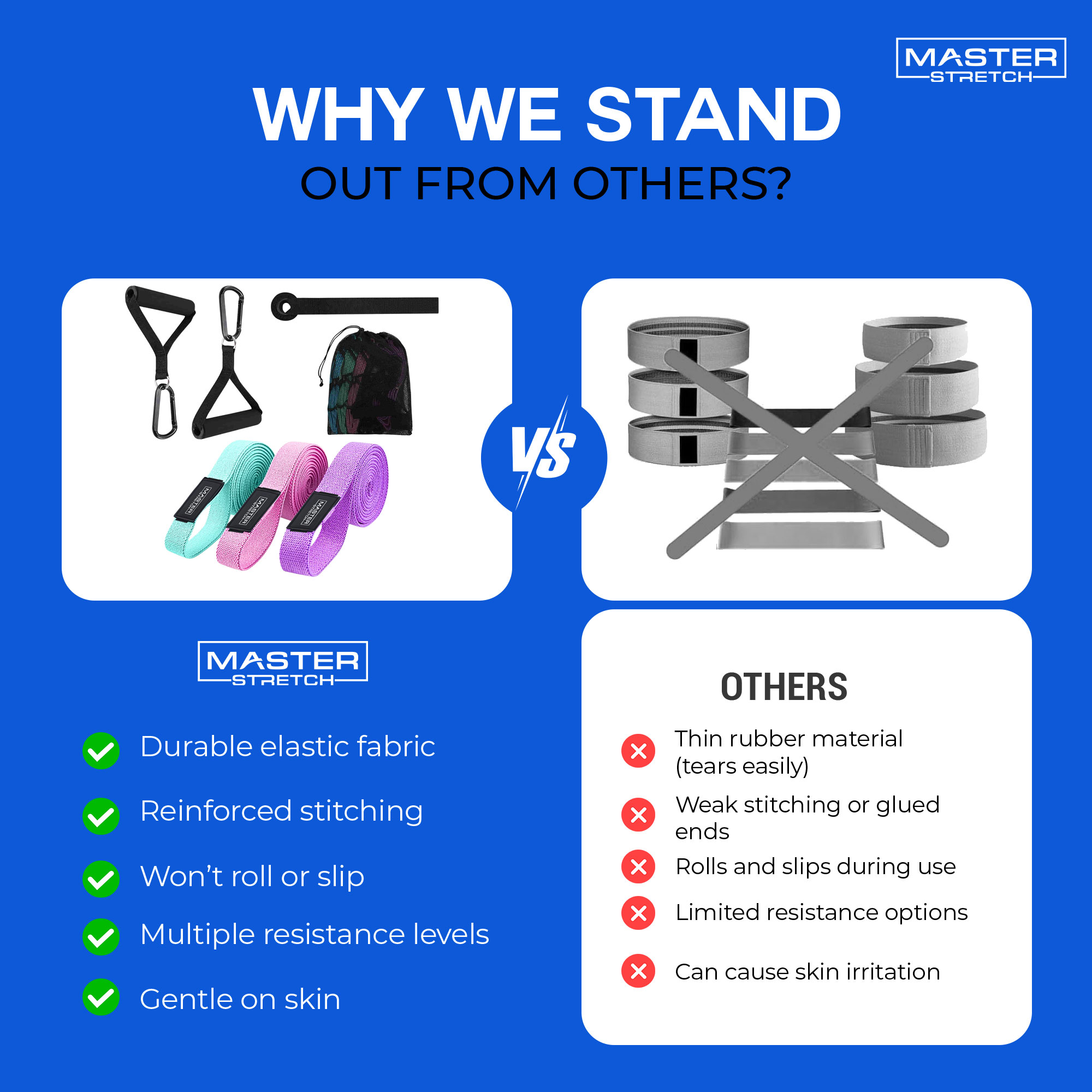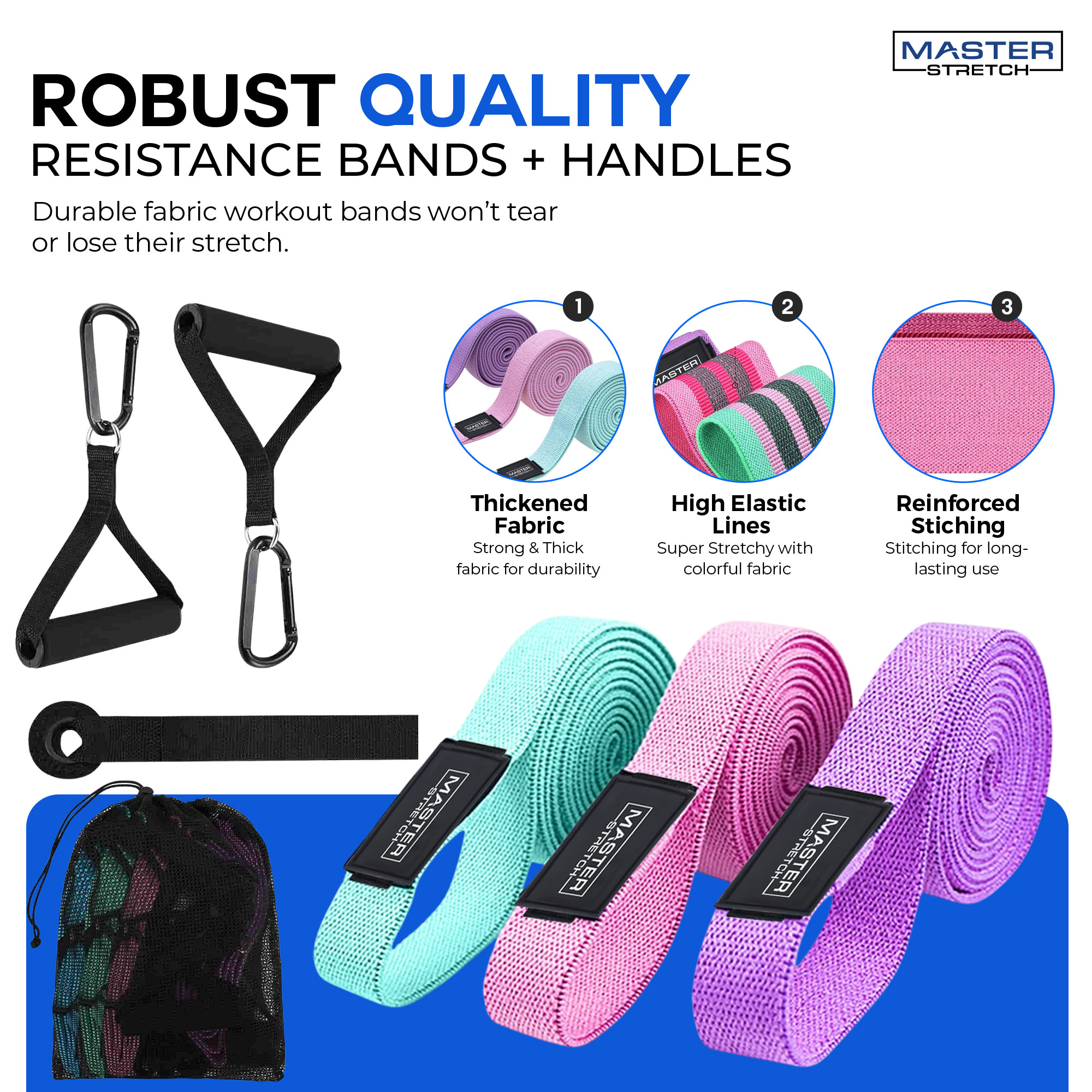 The Master Stretch Resistance Band Suit is a versatile 3-piece resistance band set designed to support strength training, stretching, mobility, and recovery—at home, in the gym, or on the go.