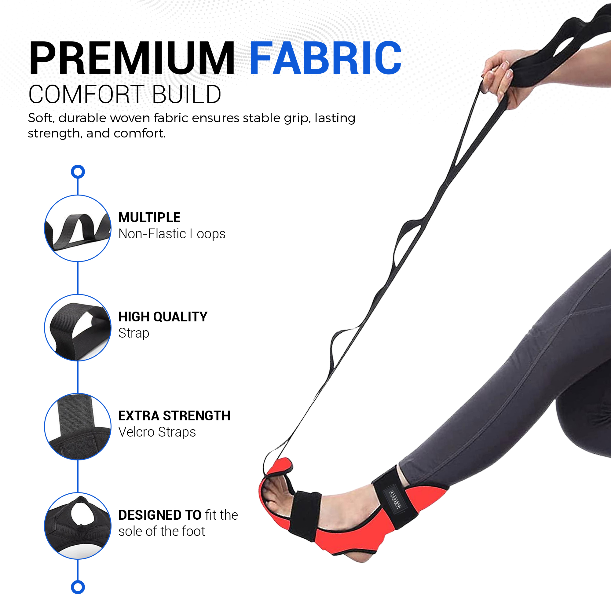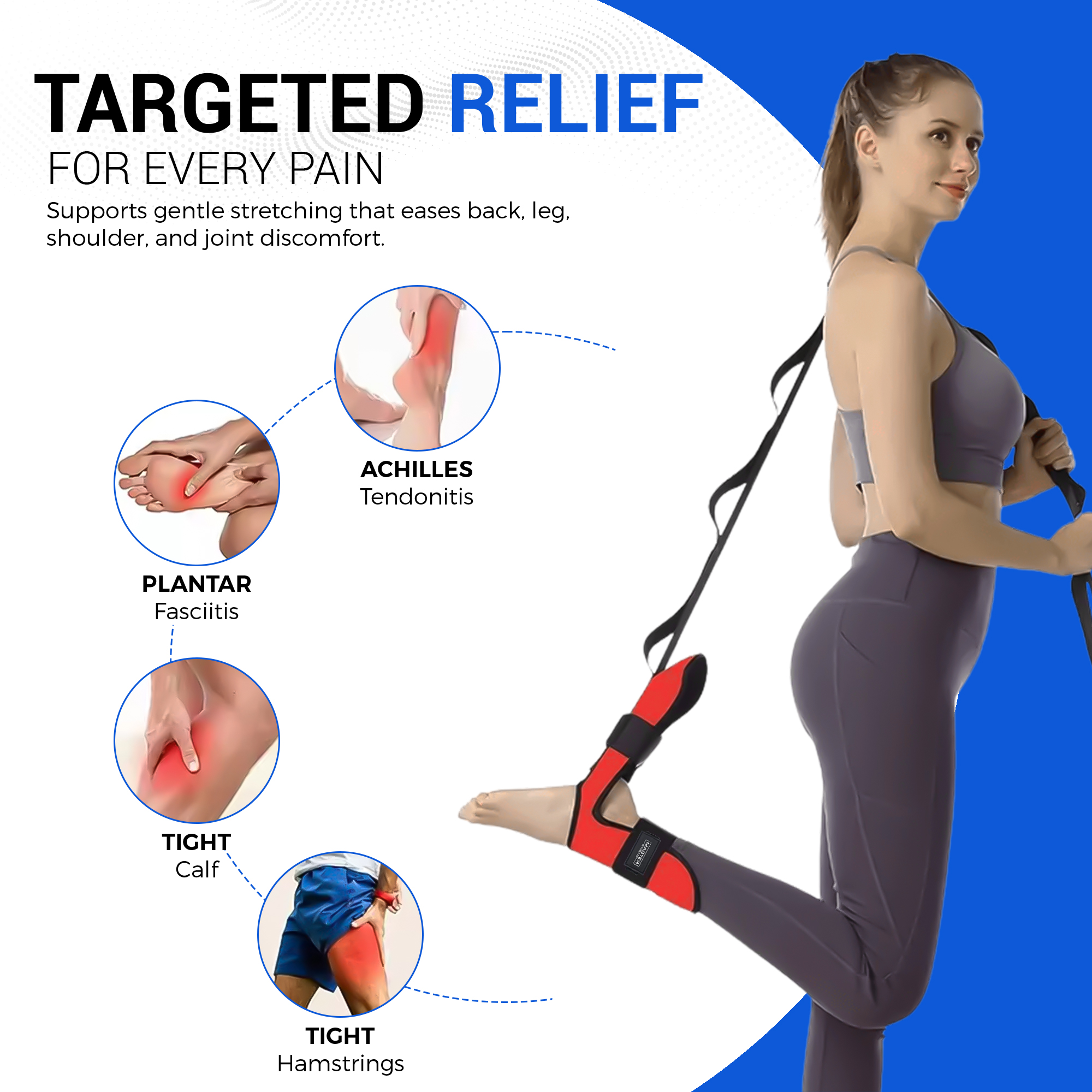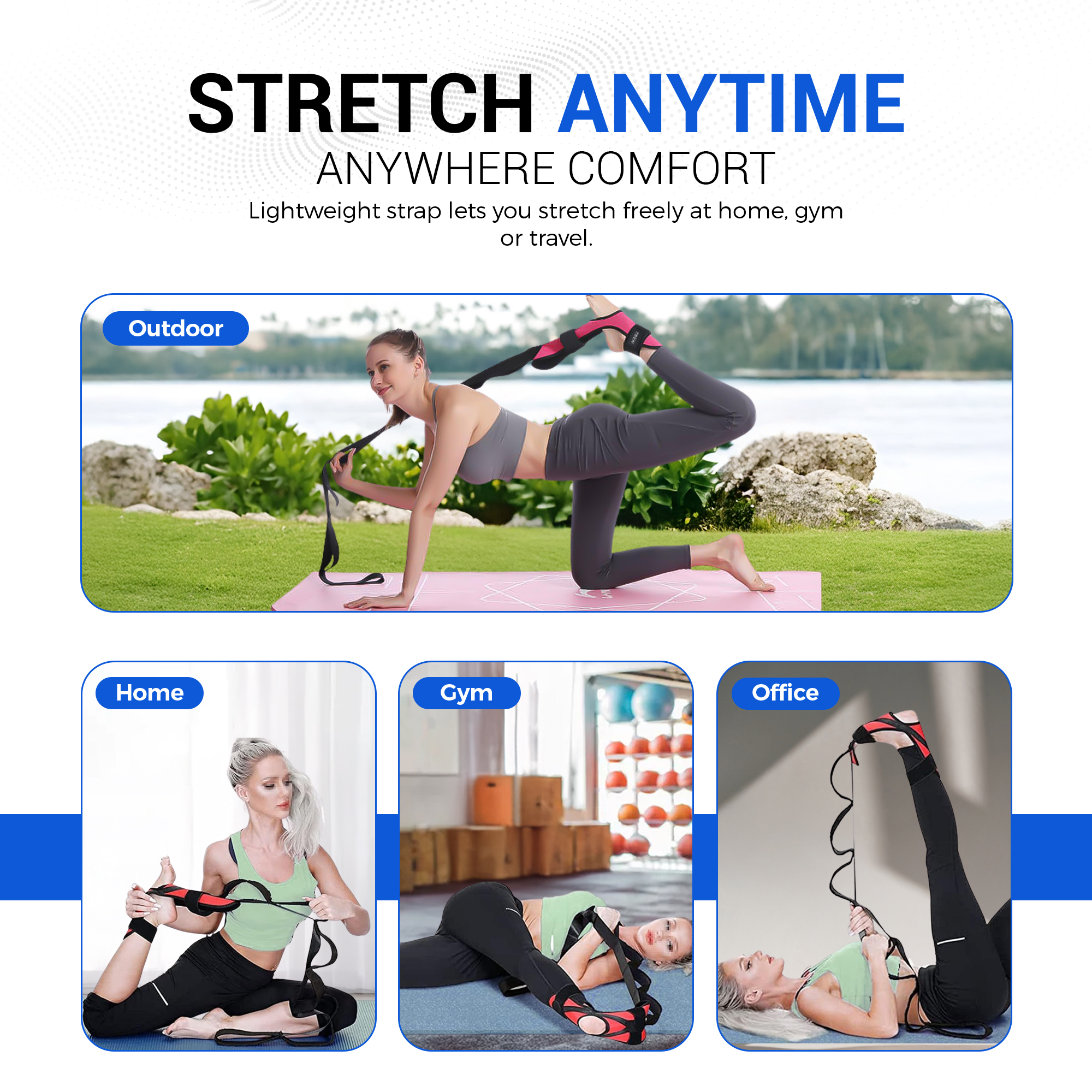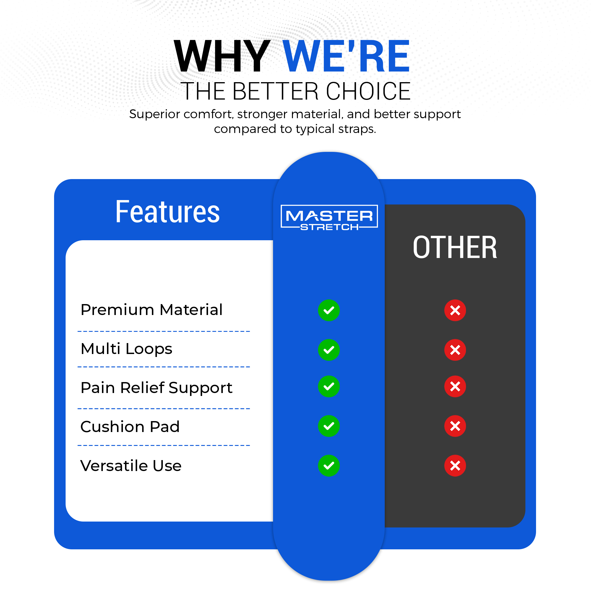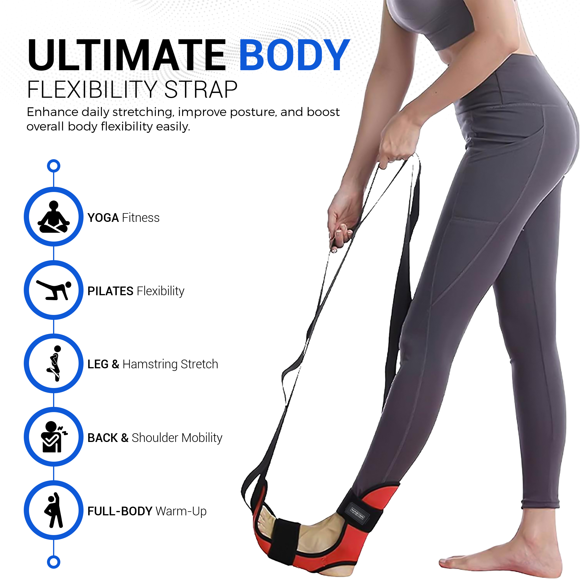 The Master Stretch Yoga Stretch Strap helps improve flexibility, mobility, and range of motion by providing controlled assistance during stretching, yoga poses, and rehabilitation exercises.
