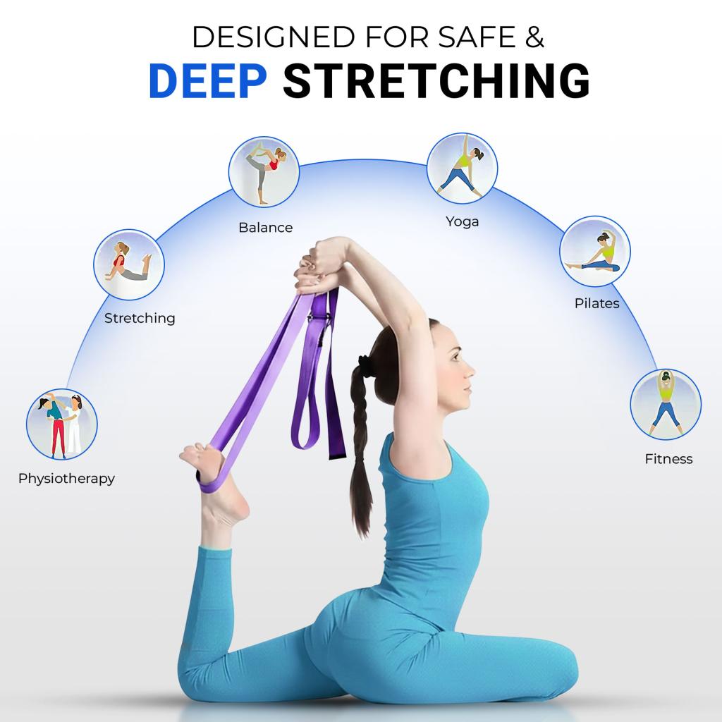 Yoga stretch straps are commonly used in yoga studios, physical therapy clinics, and home recovery routines for these reasons.